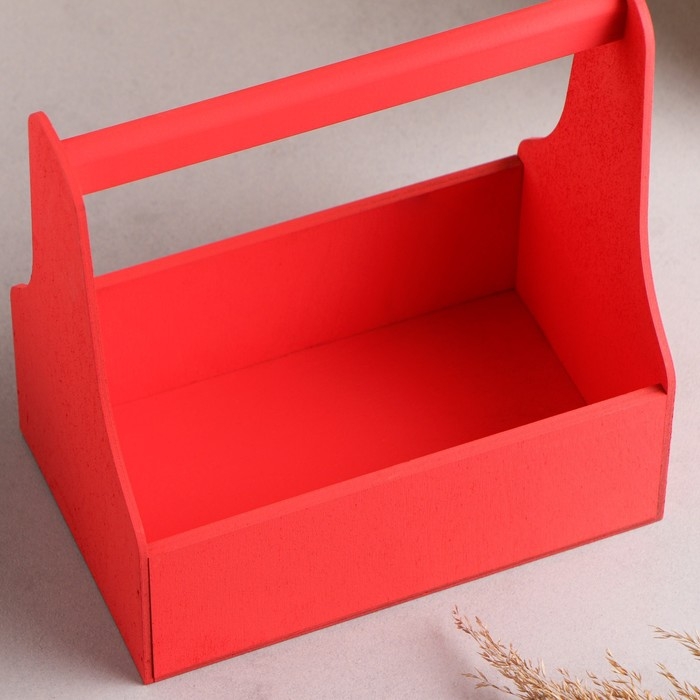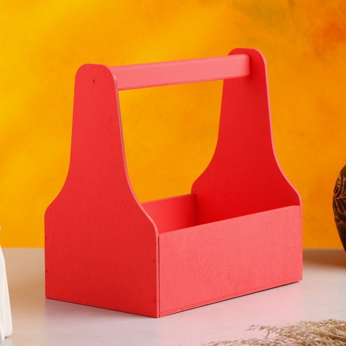Кашпо деревянное 20×12.5×20 см Стелла Моно, с ручкой, розовый Дарим Красиво