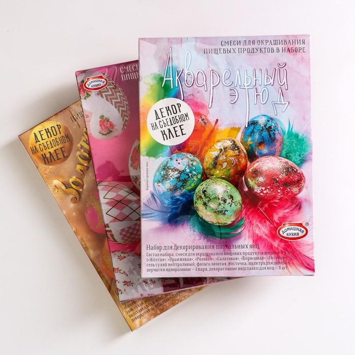 В данных наборах вы найдёте не только яркие красители. Также в комплект входит специальный гель и другие элементы, которые позволят украсить яйца в технике декупаж и не только.
