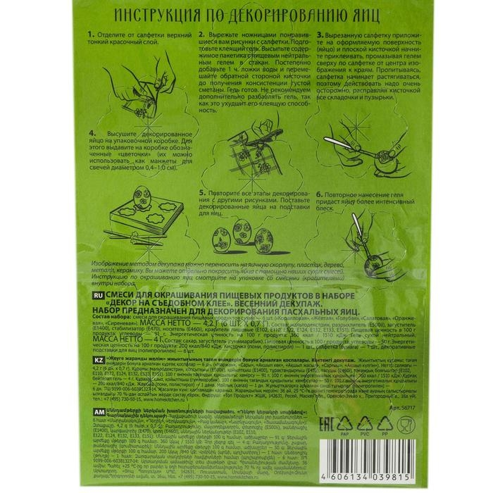 Пасхальный набор для декорирования яиц «Декор на съедобном клее», микс, 4 вида