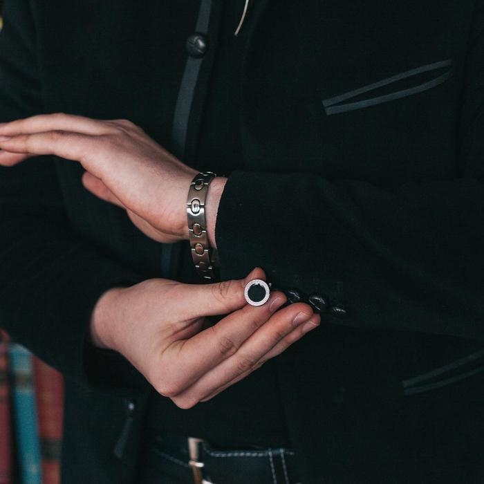 Набор мужской стальной «Запонки + Зажим для галстука» брутальность, цвет чёрный в серебре