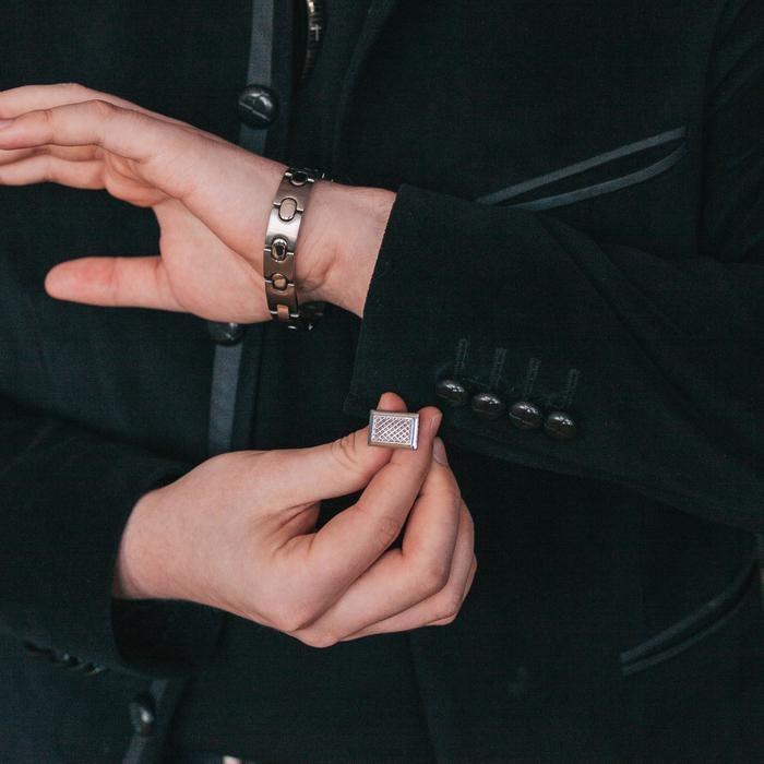 Набор мужской стальной «Запонки + Зажим для галстука» прямоугольник, цвет чёрно-белый в серебре