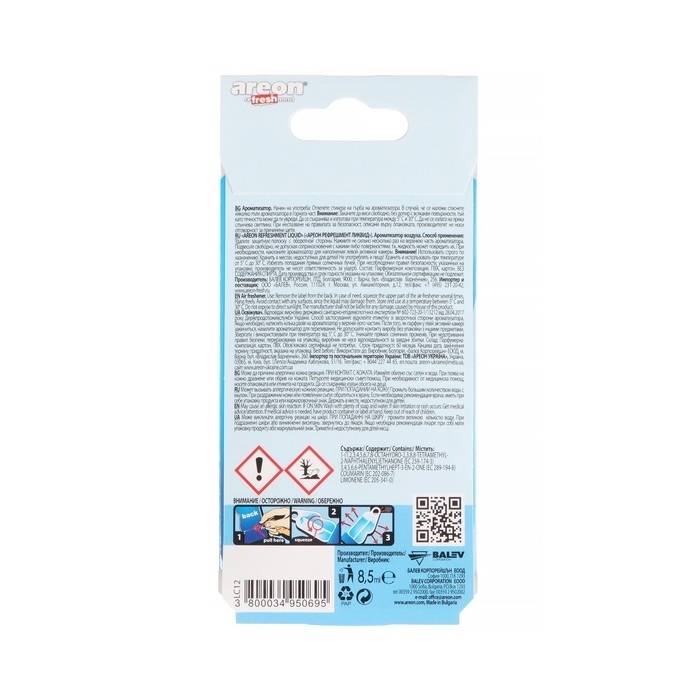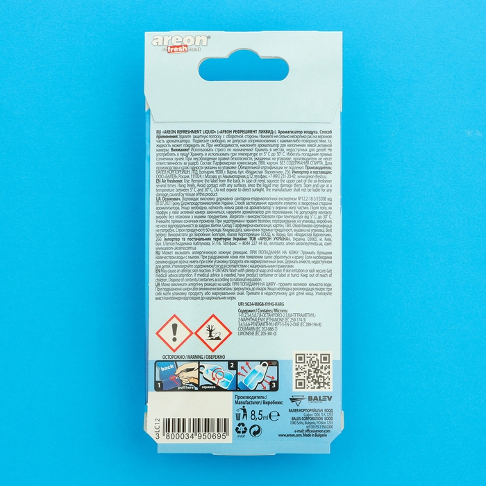 Ароматизатор на зеркало Areon Refreshment гелевый, океан 704-025-910