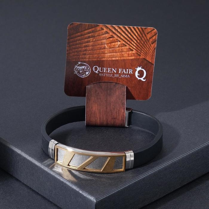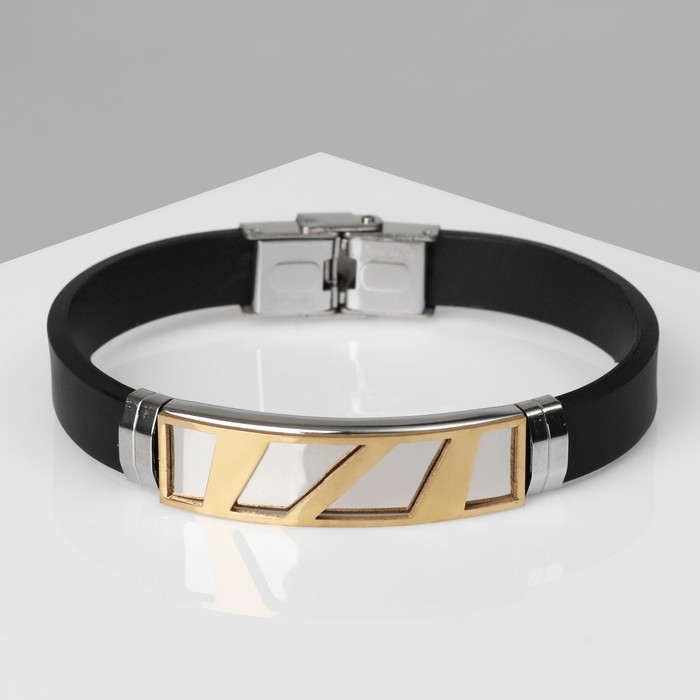 Браслет мужской «Стиль» прямоугольник резной, цвет чёрный с серебряно-золотым, 22 см