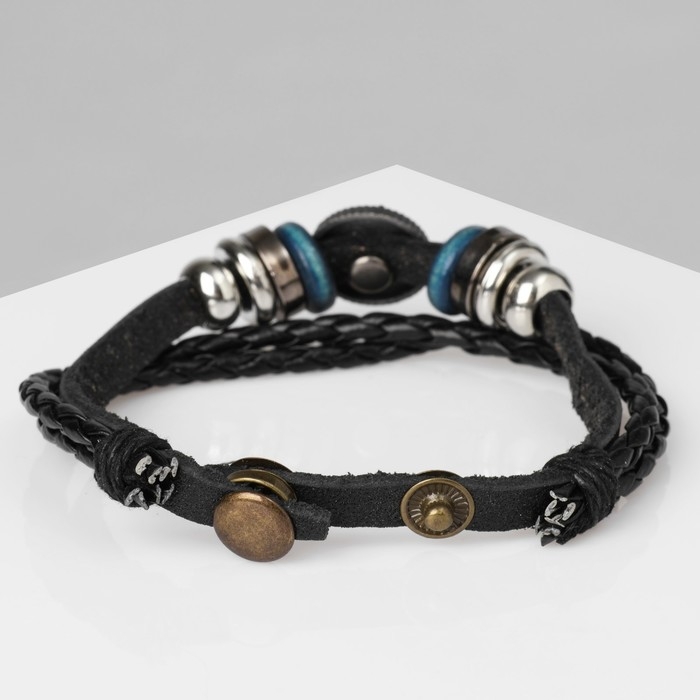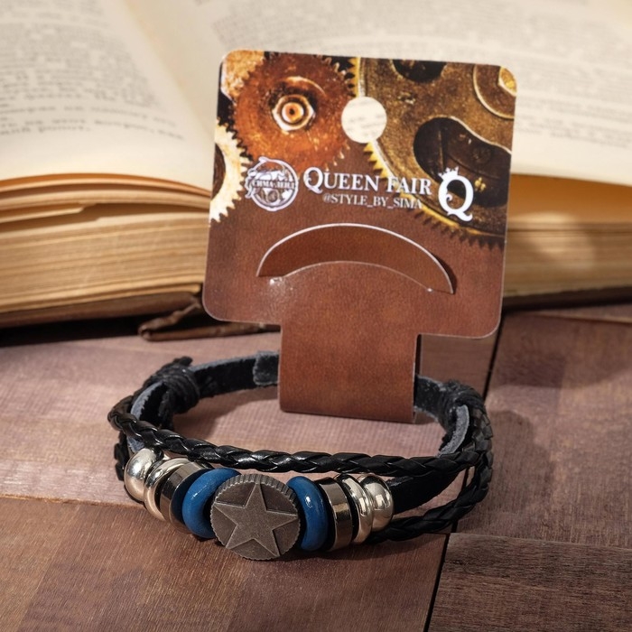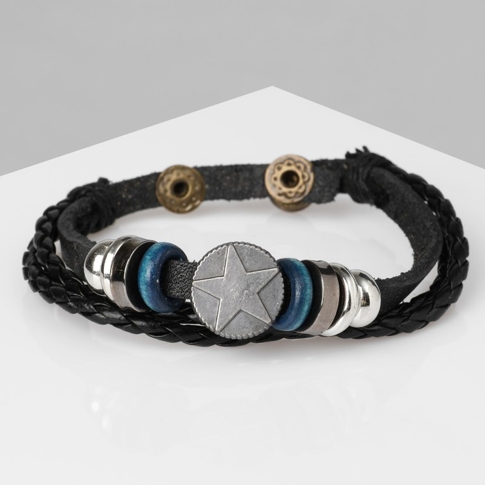 Браслет унисекс «Стиль» звезда в кругу, цвет чёрный с серебром, 21,5 см