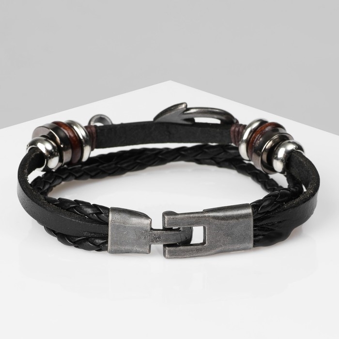 Браслет мужской «Стиль» крючок, цвет чёрный с чернёным серебром, 21,5 см