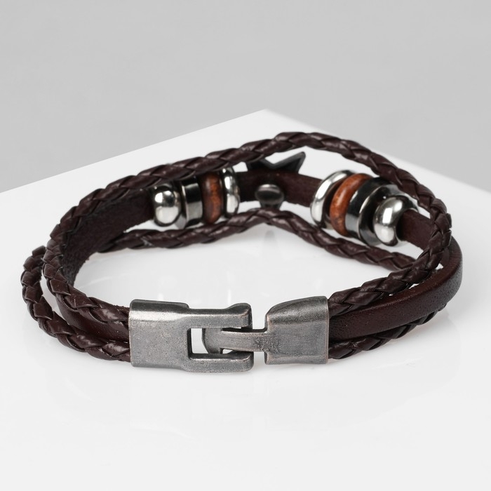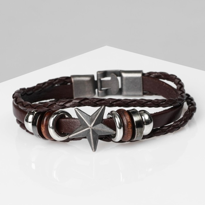 Браслет унисекс «Стиль» звезда, цвет коричневый с чернёным серебром, 21,5 см