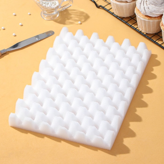 Мат для сушки цветов из мастики — нужный каждому кондитеру предмет. Изделие из поролона отлично подходит для выдерживания украшений до готового состояния.