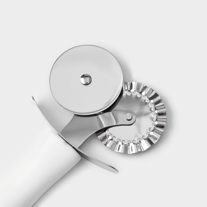 Нож для пиццы — универсальный кухонный инструмент, который не только легко разрезает готовую выпечку, но и помогает поделить на слайсы липкое тесто. Нож имеет эргономичную форму ручки и острое круглое лезвие. Колесо, прикреплённое к рукояти, продавливает продукт, а не разрезает его в отличие от классического ножа. Благодаря такому способу тесто разрезается, а начинка остается на месте.