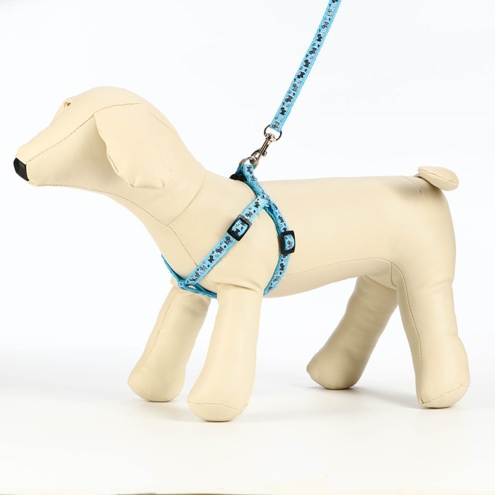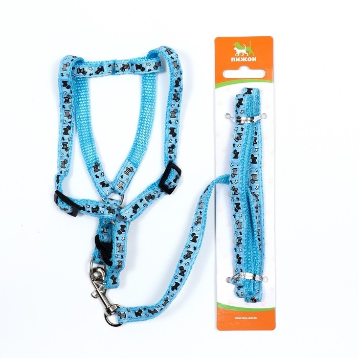 Комплект "Собачки", поводок 120 х 1 см, ОГ 23-35 см, голубой