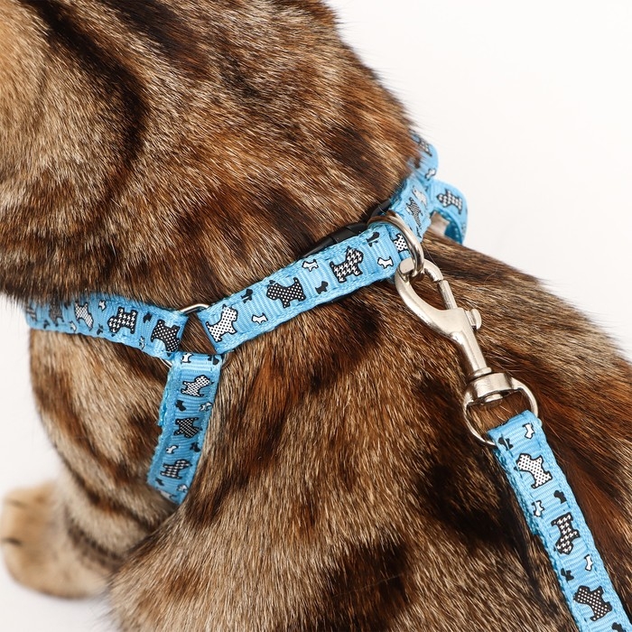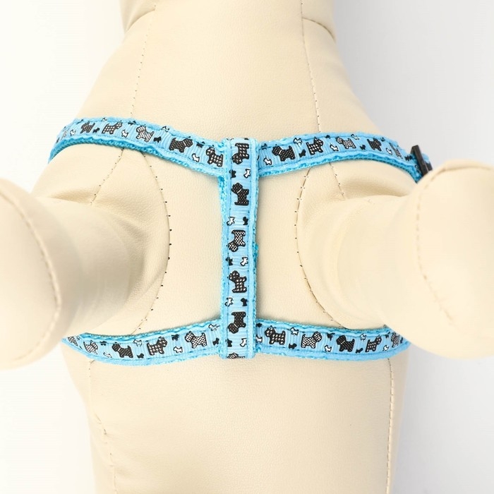 Комплект амуниции с мягкой шлейкой, поводок 120 х 1 см, ОГ 34-58 см, синяя клетка
