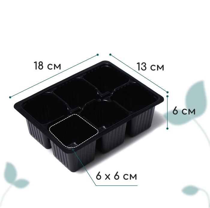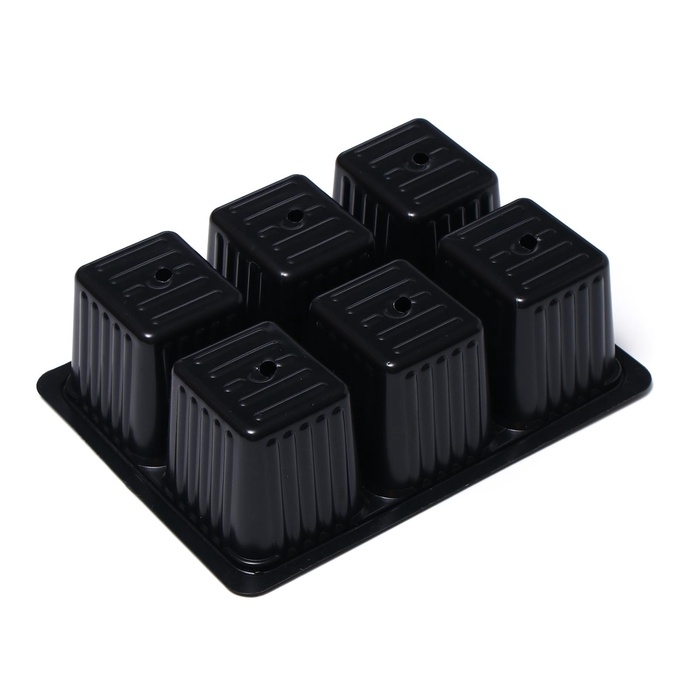 Кассета для рассады, на 6 ячеек, по 120 мл, пластиковая, чёрная, 18 × 13 × 6 см, в наборе 10 шт., Greengo