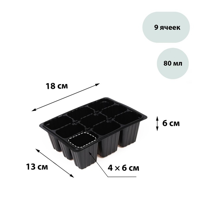 Кассета для рассады, на 9 ячеек, по 80 мл, пластиковая, чёрная, 18 × 13 × 6 см, Greengo
