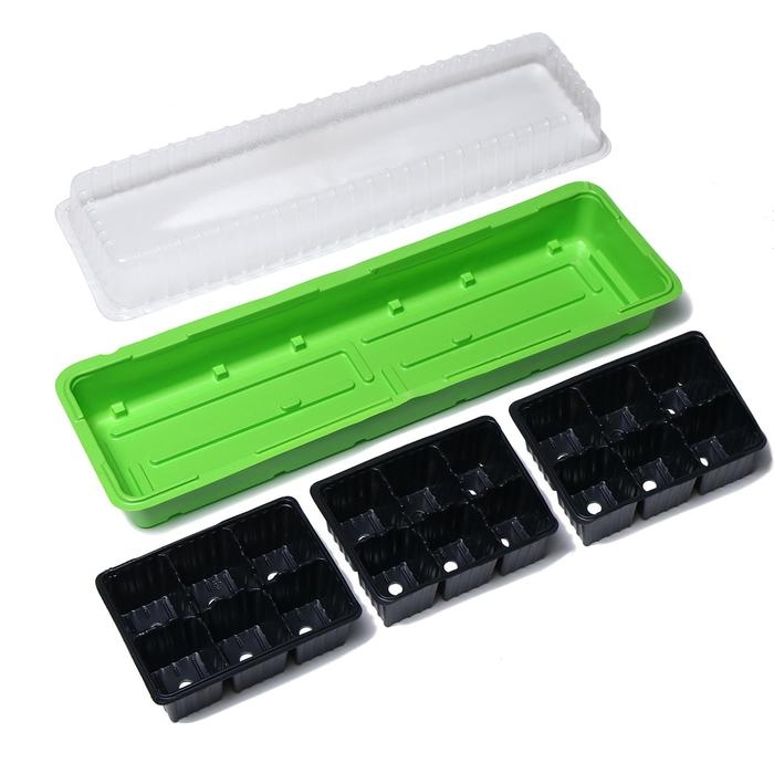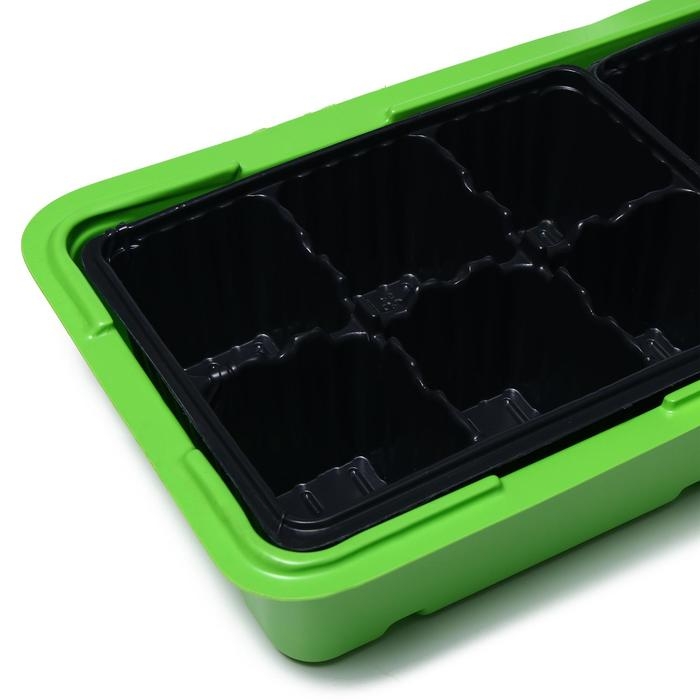 Мини-парник для рассады, 57 × 18 × 14,5 см, 3 вставки, 18 ячеек, Greengo