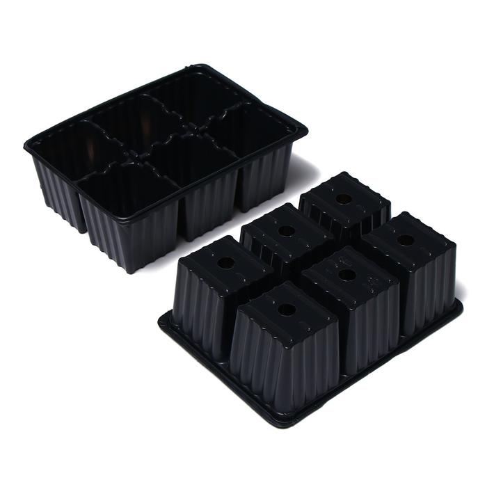 Набор для рассады: торфяной горшок 6×6 см, кассета на 6 ячеек, 17.5×13.5 см, Greengo