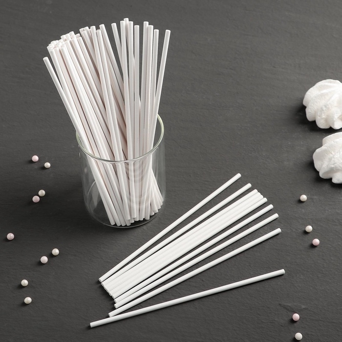 Палочки для кондитерских изделий Доляна, d=0.4 см, 20 см, набор 50 шт., бумага, белые