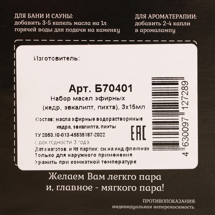 Набор "Эвкалипт, сосновое масло, пихта" 3 эфирных аромамасла 100% 15мл