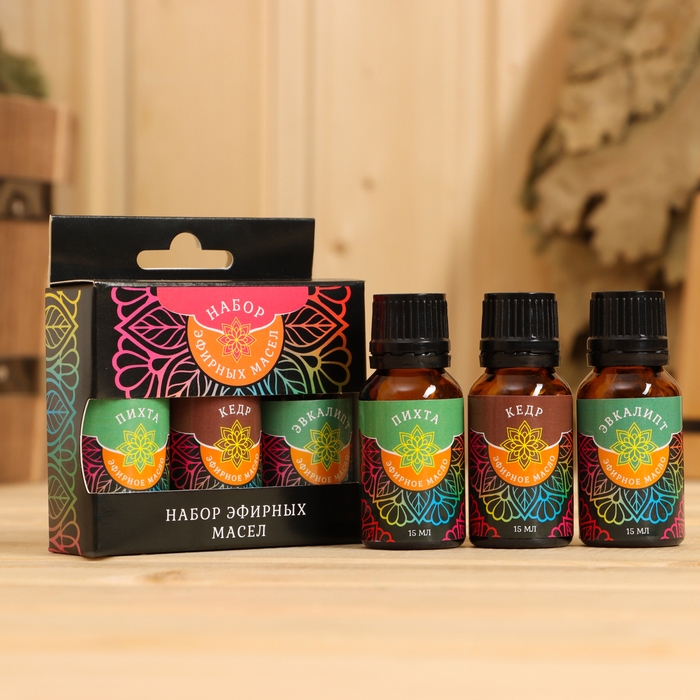 Набор эфирных масел "Кедр. Эвкалипт. Пихта" косметический, 3 шт по 15 мл