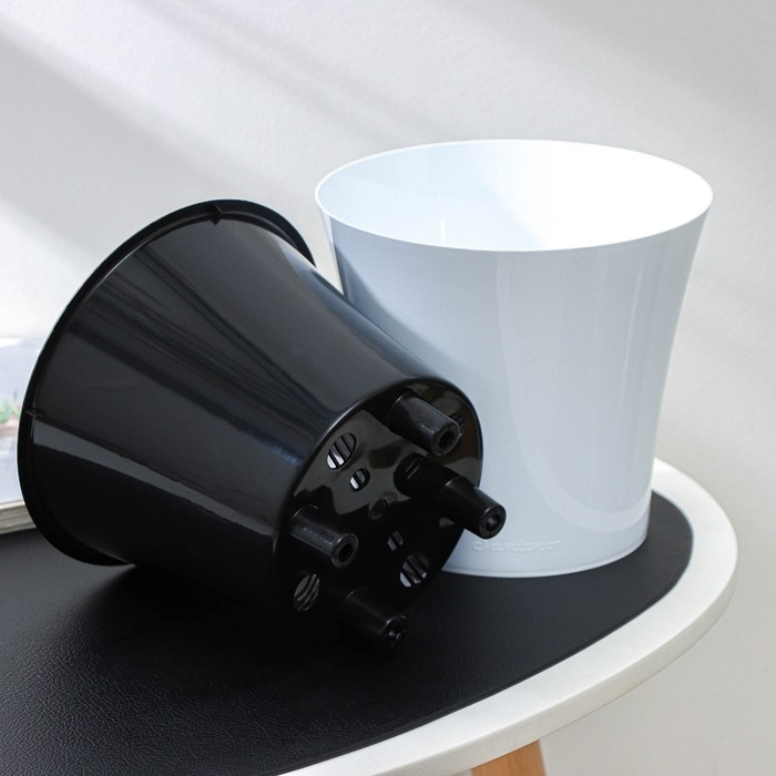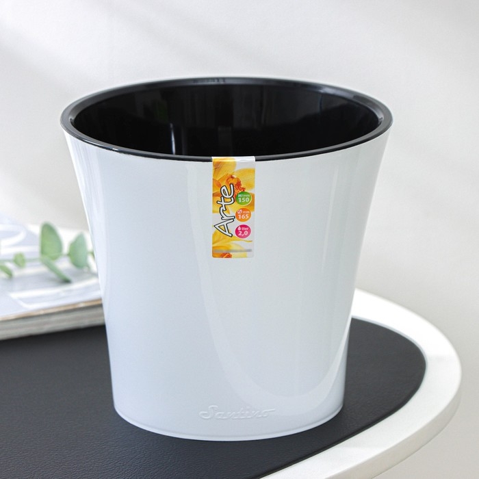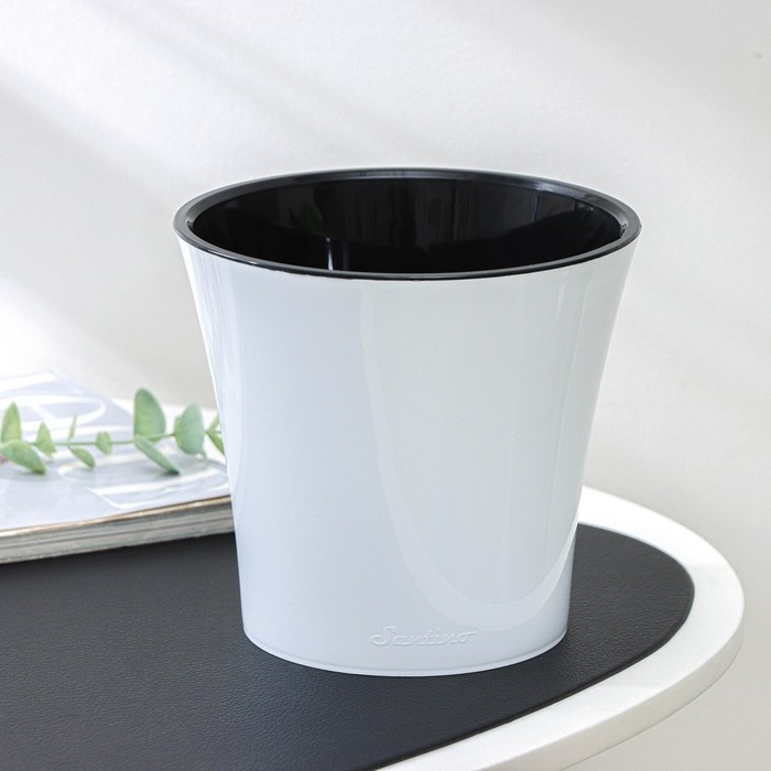 Кашпо для цветов со вставкой «Арте», 2 л, цвет бело-чёрный