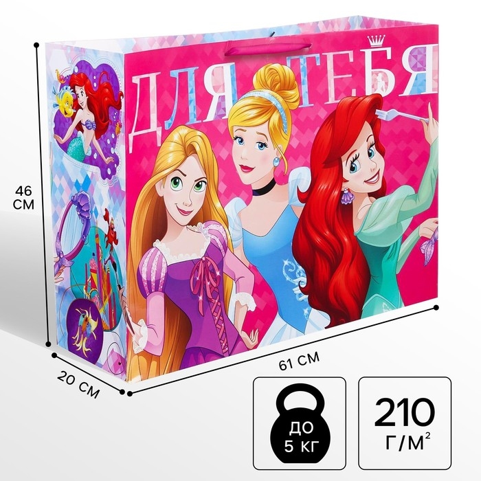 Пакет подарочный "Для тебя" 61х46х20 см, упаковка, Принцессы