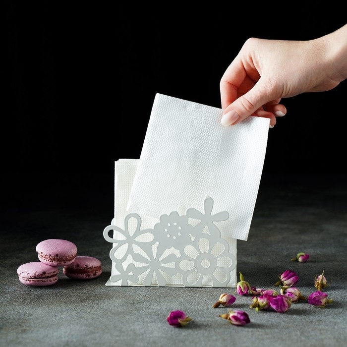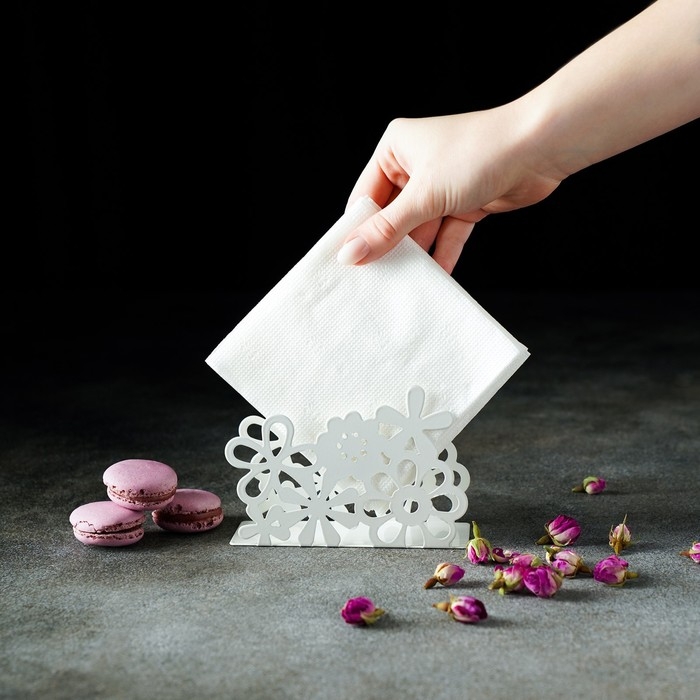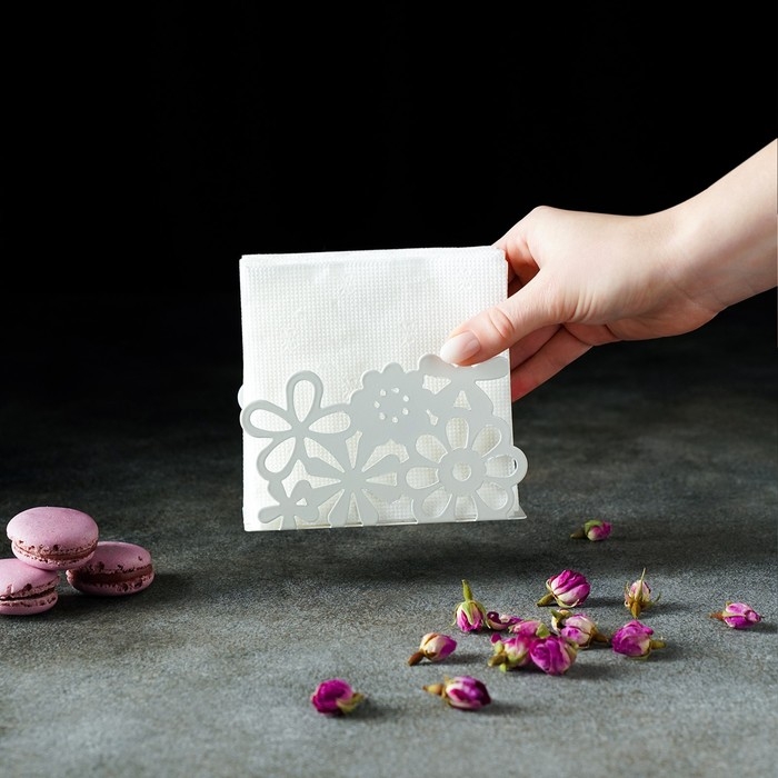 Салфетница «Цветы», 13×4,5×9 см, цвет белый