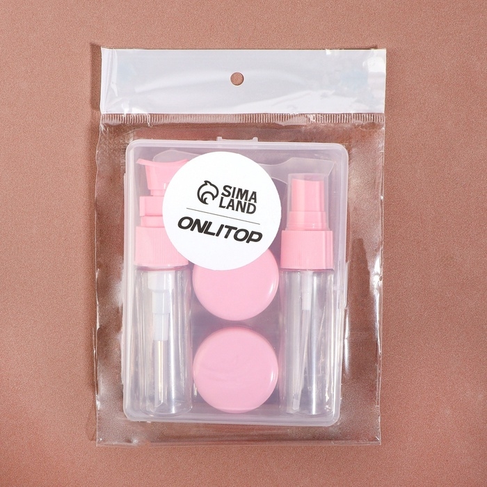 Набор для хранения, в чехле, 9 предметов, цвет прозрачный/розовый