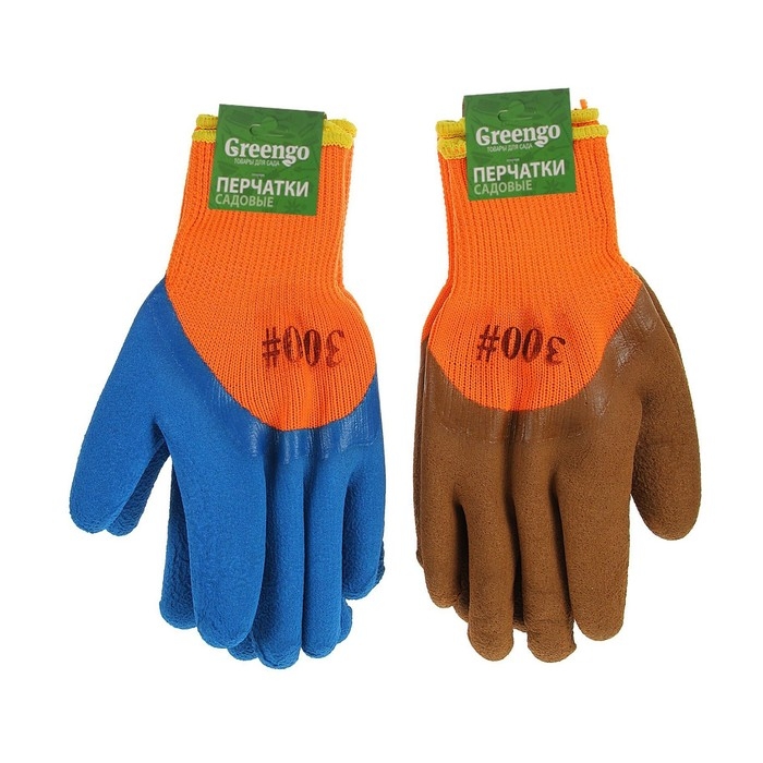 Изделия имеют тканевую основу и специальную PVC-пропитку: такое сочетание материалов делает их одновременно комфортными и износоустойчивыми. Яркая расцветка поможет легко и быстро найти пропажу среди грядок.