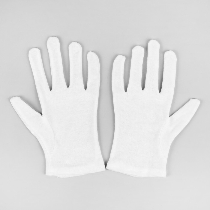 Перчатки хлопковые, размер M, пара, фасовка 12 шт, цвет белый
