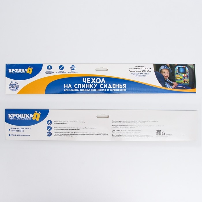 Яркий чехол ТМ «Крошка Я» сохранит в чистоте переднее сиденье автомобиля. Используйте это специальное приспособление, чтобы малыш не запачкал ботиночками спинку кресла.