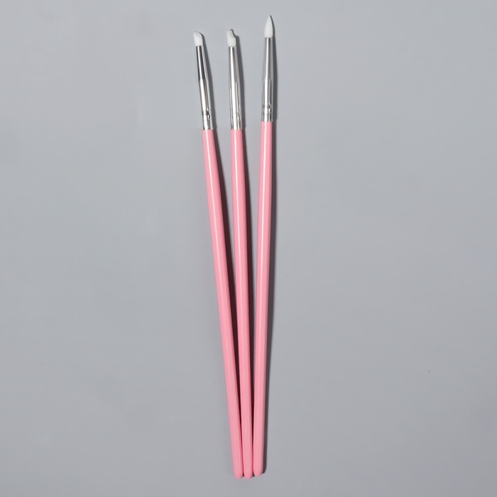 Набор силиконовых кистей для дизайна ногтей, 3 шт, 18 см, цвет розовый
