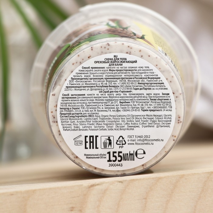 Скраб для тела ореховый "Народные рецепты" жиросжигающий, для бани, банка, 155 мл