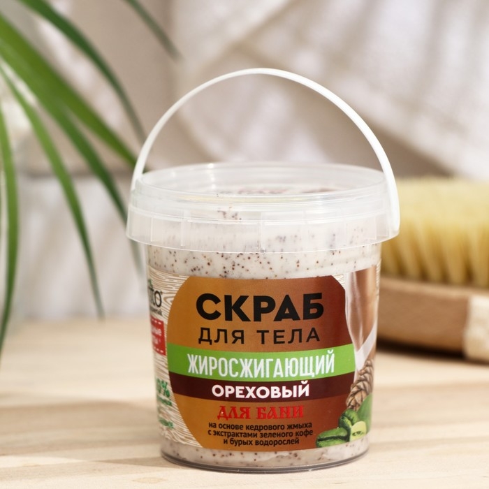 Скраб для тела ореховый "Народные рецепты" жиросжигающий; очищает верхние слои эпидермиса; смягчает кожу; возвращает ей упругость и эластичность. После нескольких применений тело становится подтянутым и ухоженным. Используйте средство 1-2 раза в неделю.