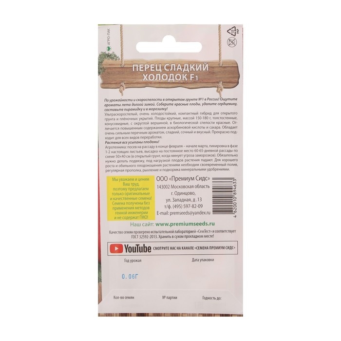 Семена Перец сладкий "Холодок" F1, ультраскороспелый, 0,06 г
