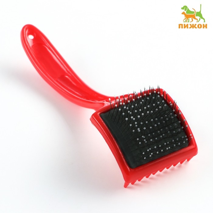 Щётка-пуходёрка малая жесткая с каплями, основание 50х50 мм, красная,