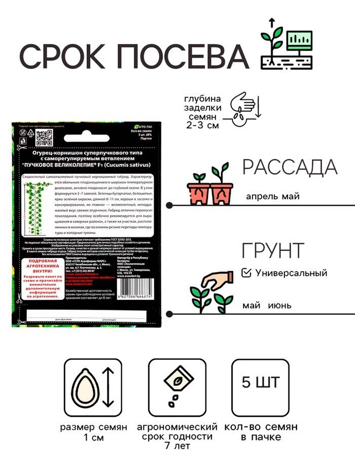 Семена огурца "Великолепная пятерка", F1,набор 5 шт