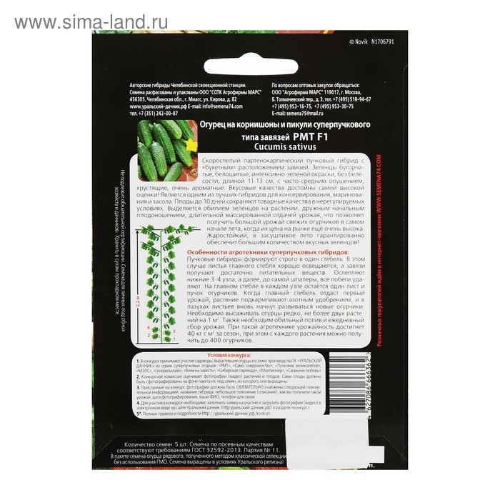 Семена Огурец "РМТ" F1 супербукетный тип, партенокарпический, 5 шт