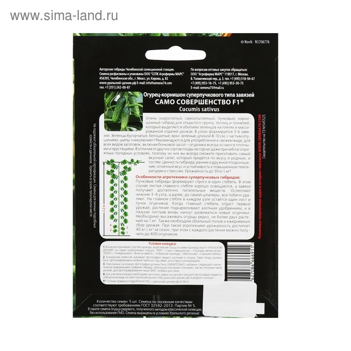 Семена Огурец "Само совершенство" F1 супербукетный тип, партенокарпический, 5 шт