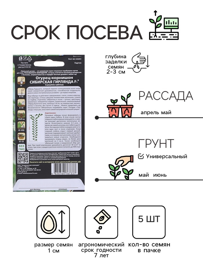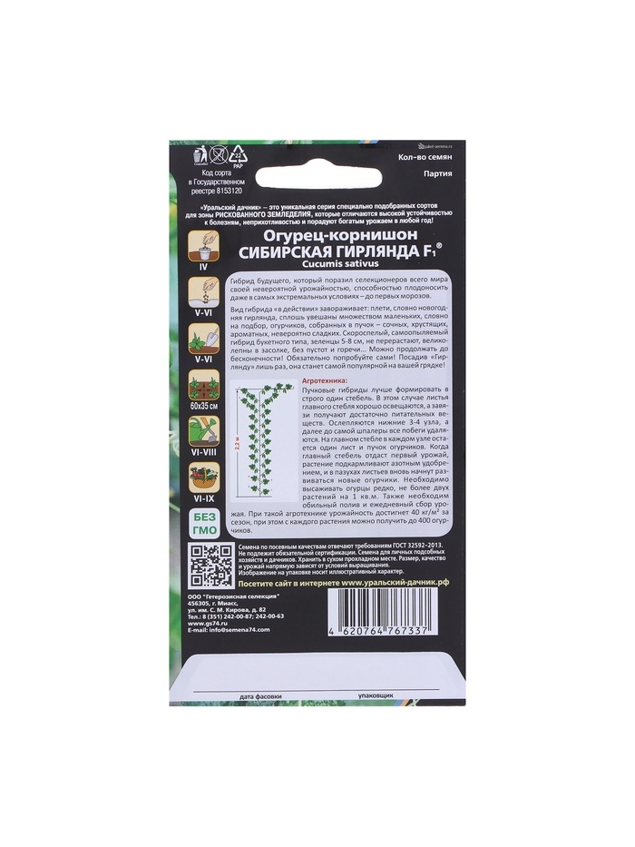 Семена Огурец "Сибирская Гирлянда" F1 скороспелый, партенокарпический, 5 шт
