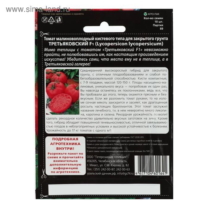 Семена Томат "Третьяковский" F1 среднеплодный, среднеранний, индетерминантный, 10 шт