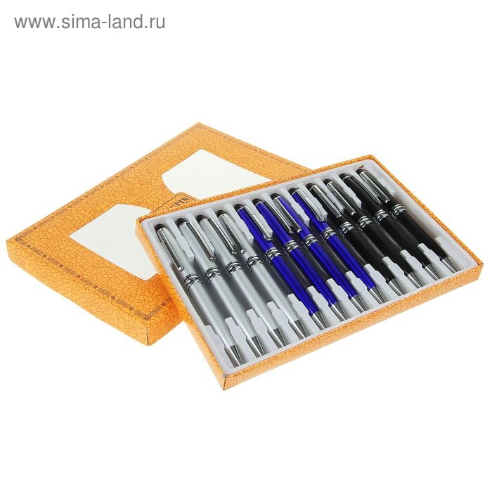Ручка шариковая, подарочная, в пластиковом футляре, поворотная, "Бизнес", чёрная с серебристыми вставками