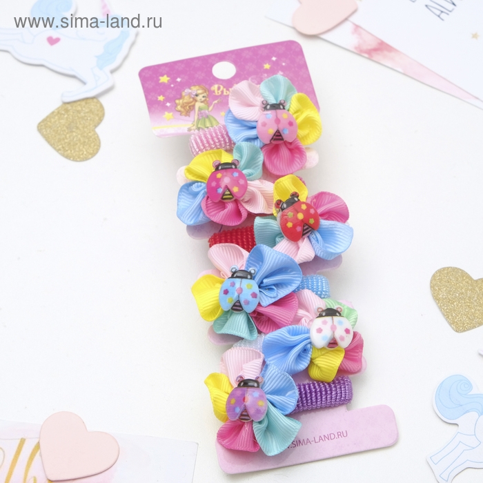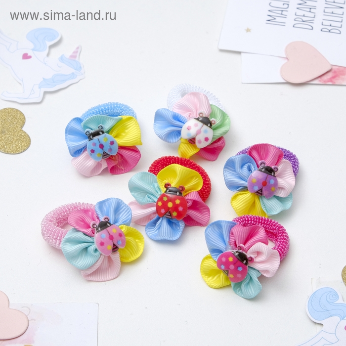Резинка для волос "Весёлый глянец" (набор 6 шт) цветок божья коровка
