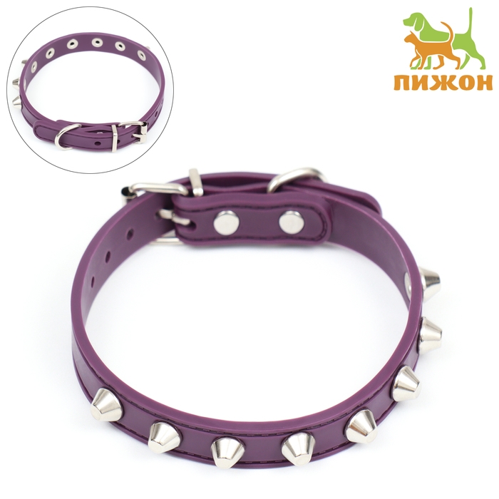 Ошейник с затупленными шипами 38 х 1,5 см, ОШ 26-33, морозостойкий материал PU, фиолетовый
