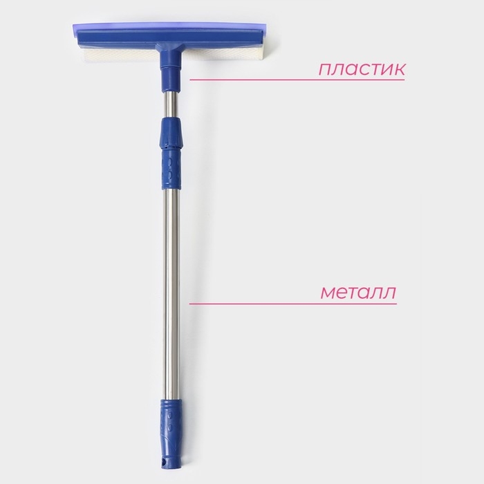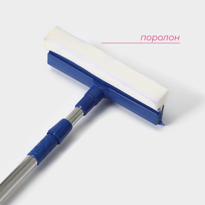 Щётка для окон Доляна, телескопическая ручка 49(75) см, водосгон 20 см, насадка поролон 20 см, цвет синий