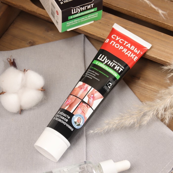 Состав: Вода, Глицерин, Диметикон М 350, Циклометикон DC 345, Масло подсолнечное, Myritol 318, Кутина GMS / Кутина GMS V, Спирт цетеариловый, Arlamol, Стеариновая кислота, Воск эмульсионный, Пропиленгликоль, Микрокар DMP /Кемабен / Sharomix DMP, Триэтаноламин, Изигель DO / Карбопол Ультрез-10, Кислота молочная, Трилон Б, Катон CG / Микрокар IT/ Шаромикс MCII , ЭПГ Сабельника (корень), Отдушка Compo №3, ЭМ полыни, Гидролизат коллаген, ЭМ зверобоя, ЭПГ алоэ, ЭПГ женьшеня, Шунгит, Масло кедровое, Мумие, Витанол.