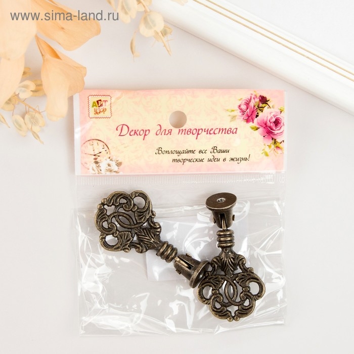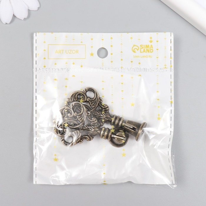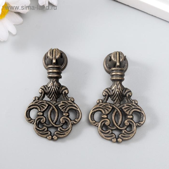 Ручка для шкатулки металл "Растительный орнамент" бронза 5,8х2,8 см