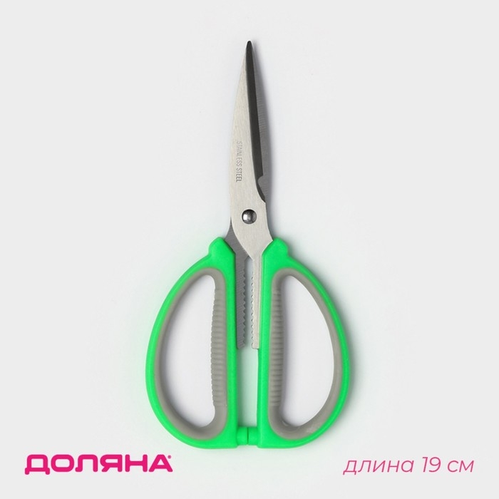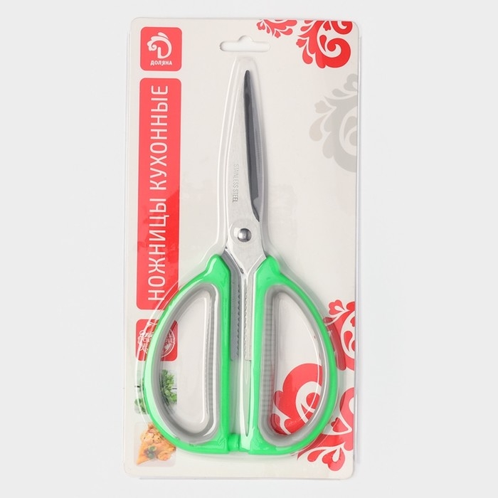 Ножницы кухонные Доляна «Помощник», 19 см, цвет зелёный