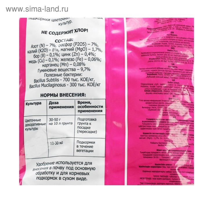 Удобрение органоминеральное для цветов, 1 кг