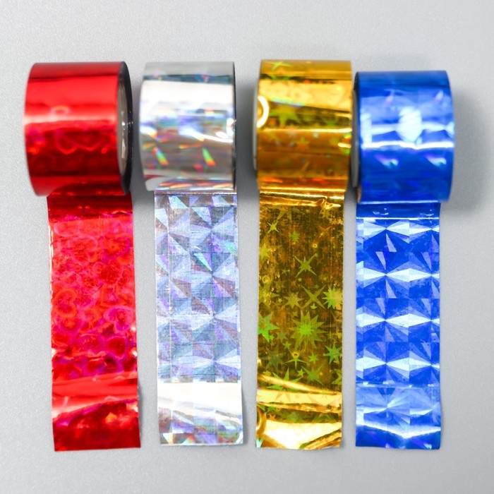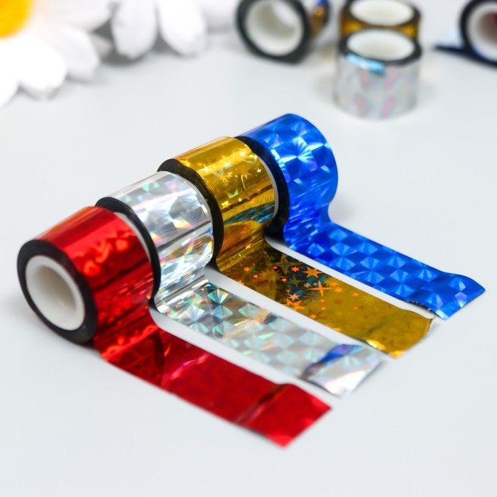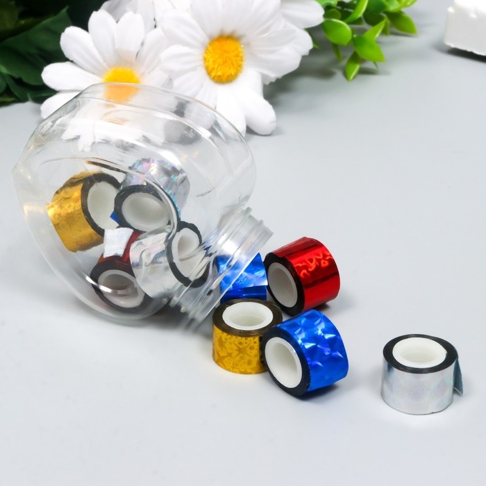Клейкая лента пластик в банке "Голография" (набор 10 шт) цвета МИКС 1,2смх1м 6,3х5,3х3,4см