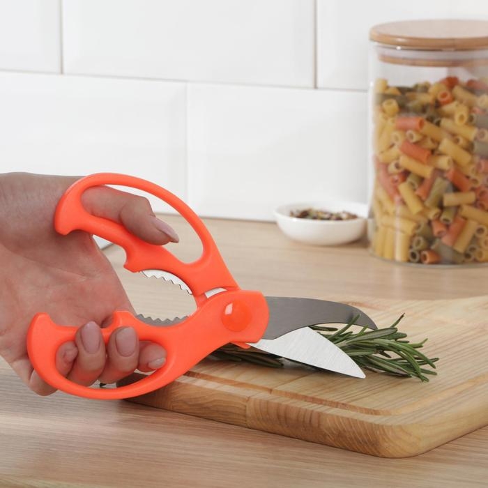 Ножницы кухонные Доляна «Ловкач», 19 см, цвет оранжевый