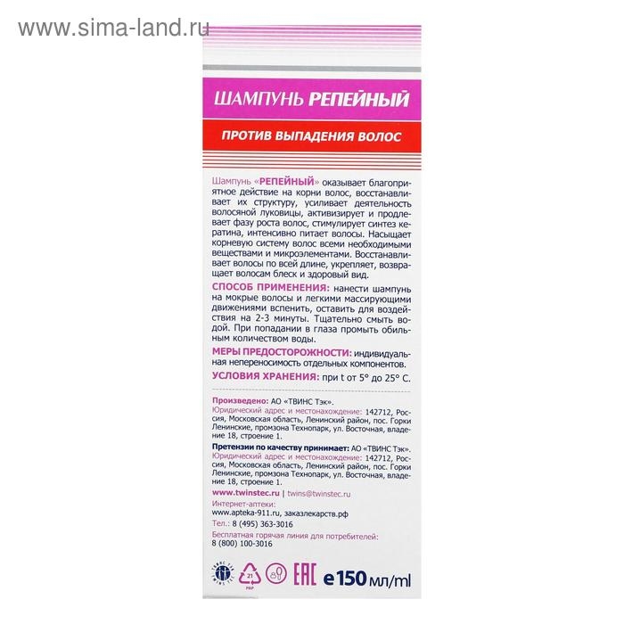 Шампунь «911 Репейный» от выпадения волос и облысения, 150 мл