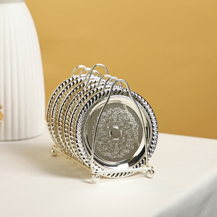 Набор блюдец «Серебро», 14×10×12 см, с подставкой, 6 шт, цвет серебряный